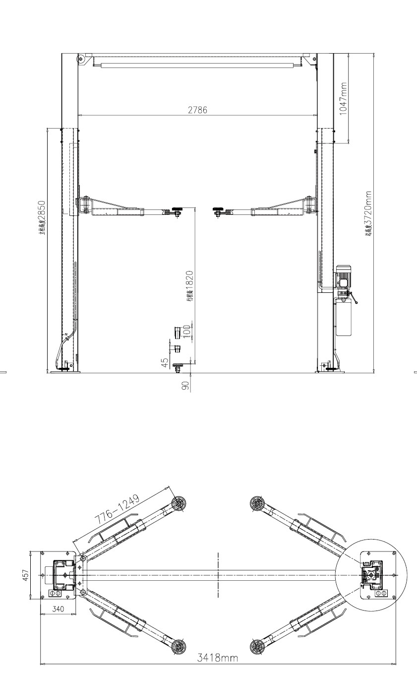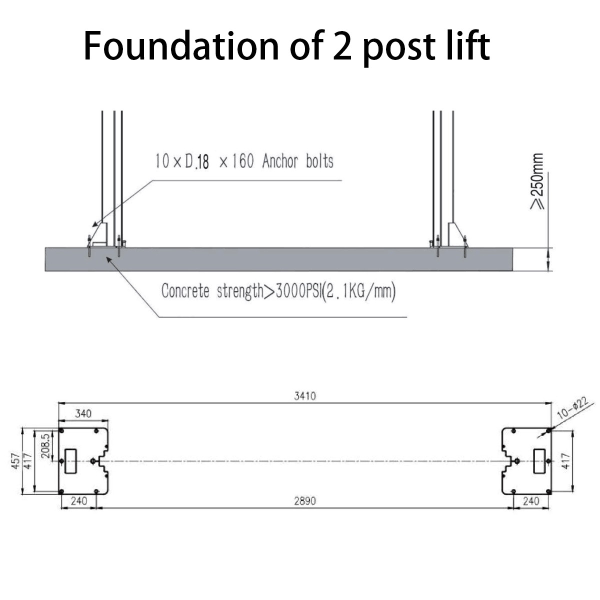 ข้อมูลจำเพาะทางเทคนิคของลิฟท์ยกรถ 2 เสาไฟฟ้า: