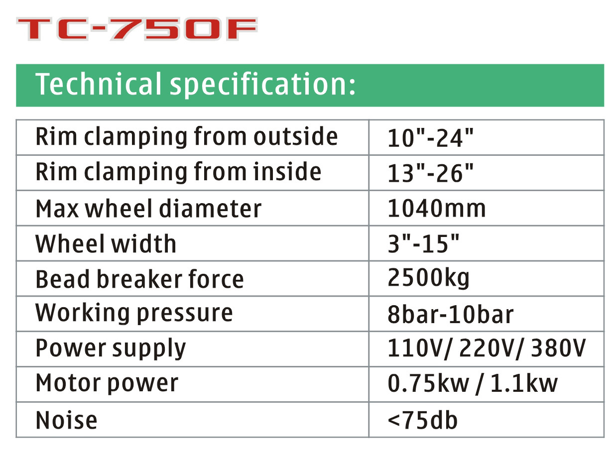 เครื่องเปลี่ยนยาง TC-750F / เครื่องเปลี่ยนยางรถยนต์ / เครื่องเปลี่ยนยางรถยนต์ / เครื่องยาง