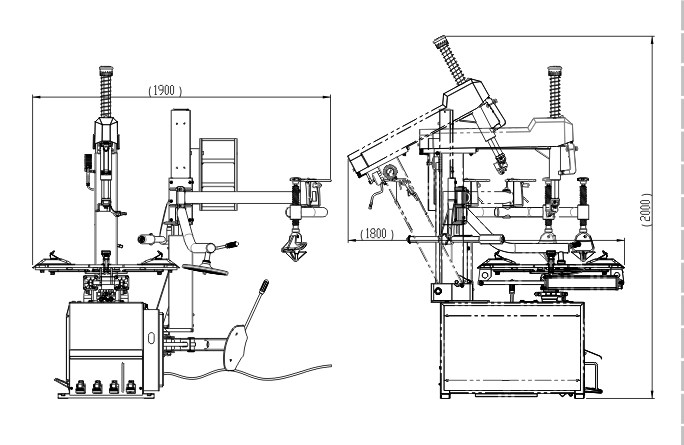 1) ระบบเปลี่ยนยางอัตโนมัติ การเอียงไปข้างหลังและไปข้างหน้าของคอลัมน์ และการล็อกของคอลัมน์สามารถทำได้โดยใช้ลม