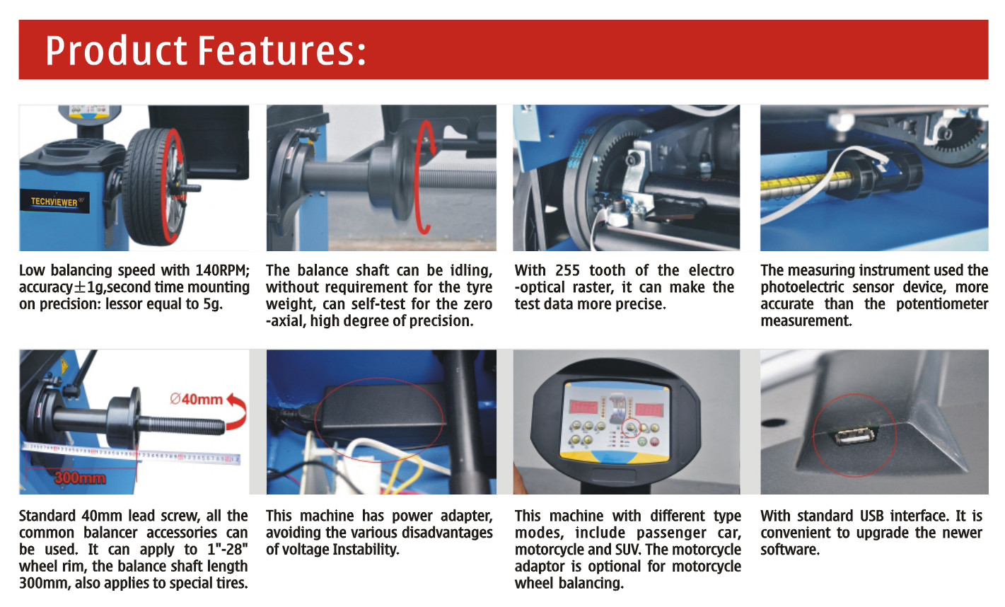WB-950 บาลานเซอร์ล้อ คุณสมบัติ:
