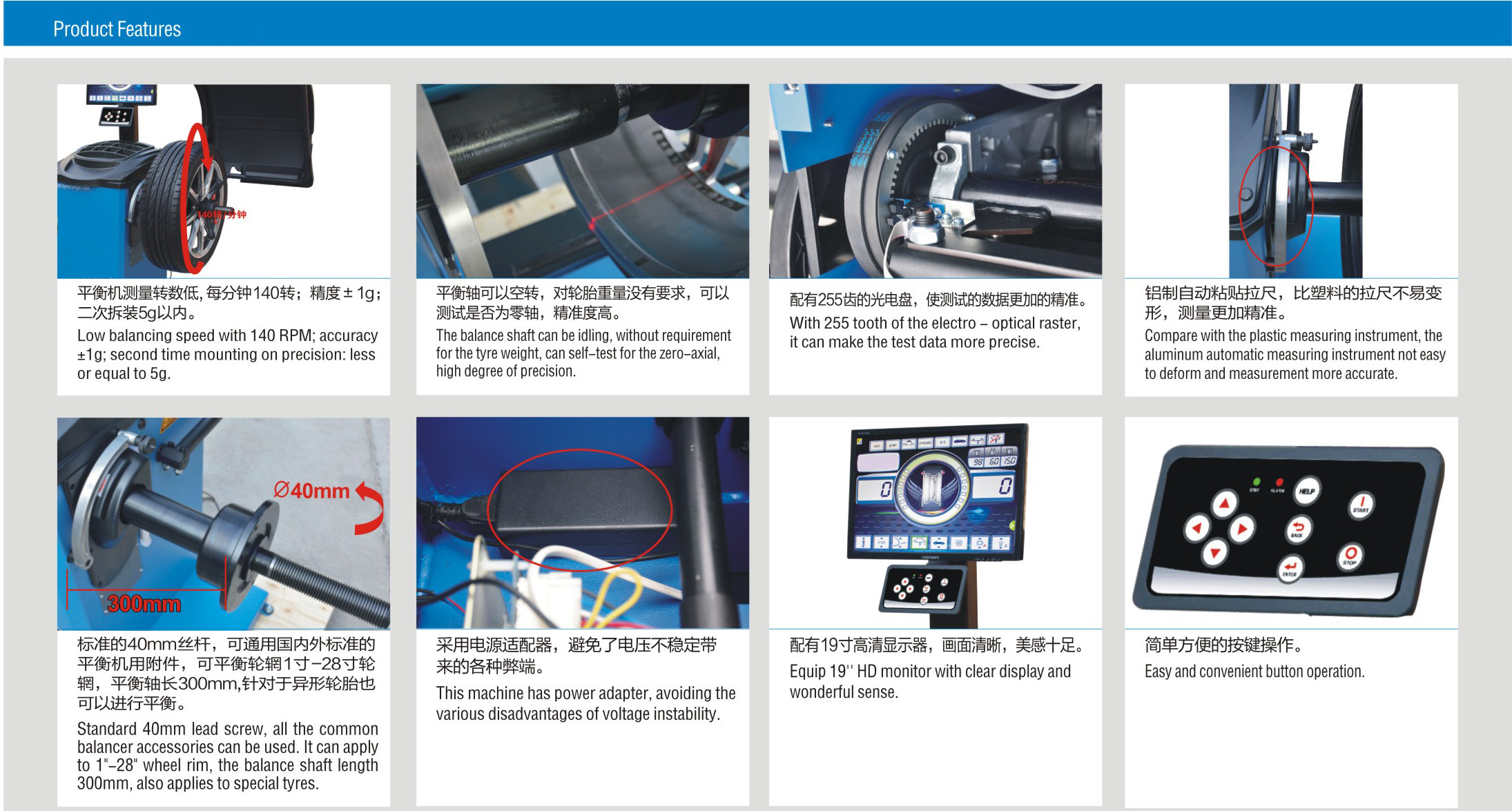 เครื่องถ่วงล้อ LCD คุณสมบัติ: