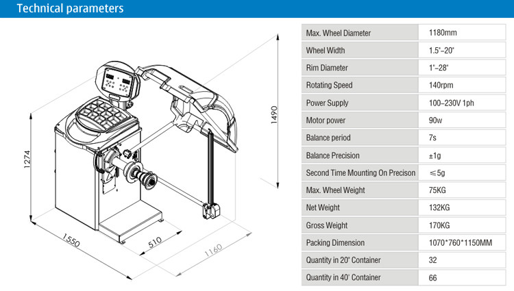 WB-950 เครื่องถ่วงล้อข้อกำหนดทางเทคนิค: