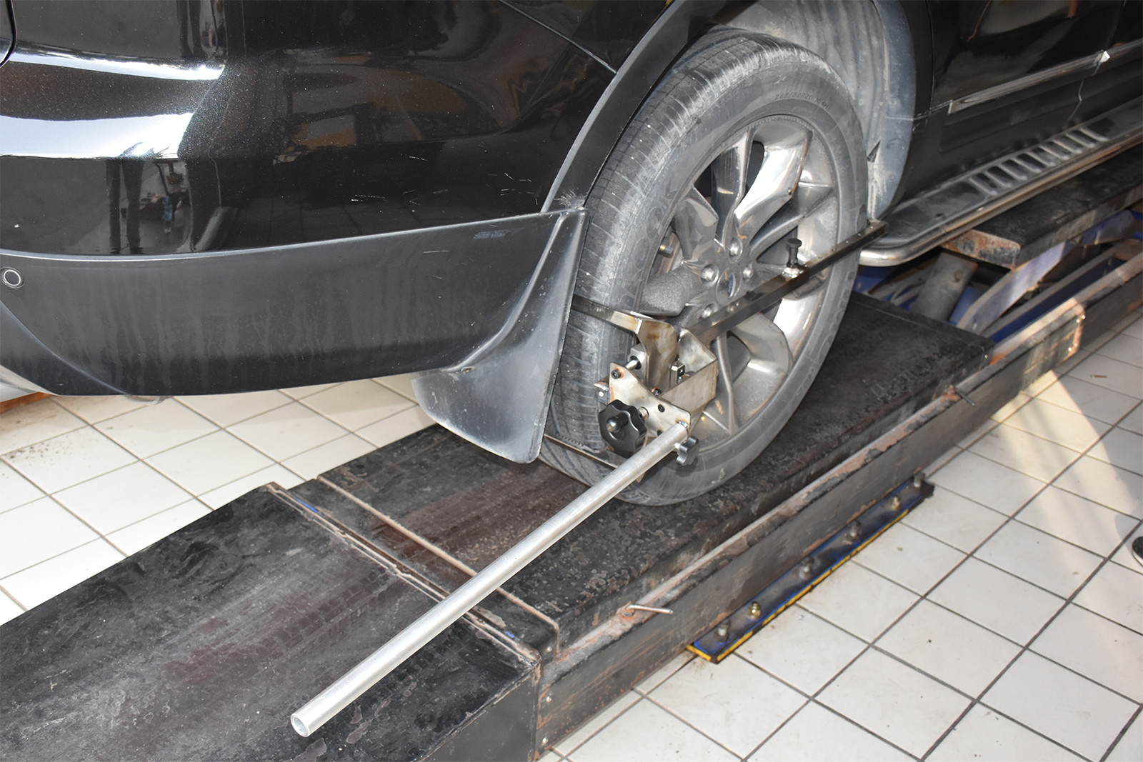 การวัดนิ้วเท้าจะขนานกับเส้นกึ่งกลางของรถเพื่อการตั้งศูนย์ล้อ 4 ล้ออย่างแท้จริง